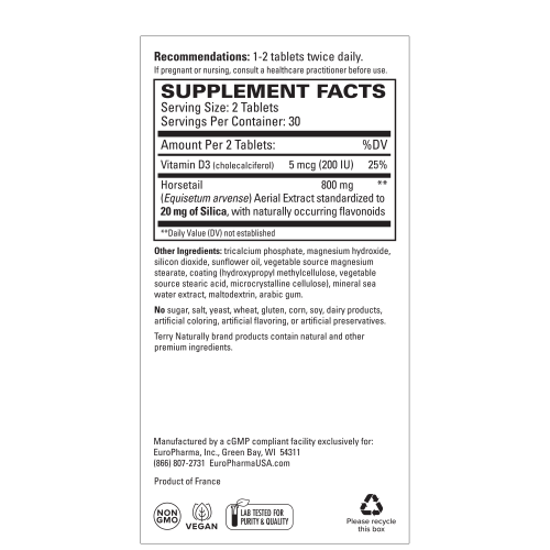 Silica is required for healthy collagen and connective tissue throughout the body.* Silica-20 features a superior form of silica from the horsetail plant, plus beneficial trace minerals from the sea.