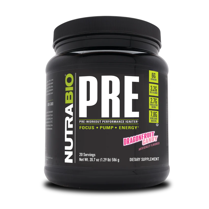 Who doesn’t love a good pump in the gym? NutraBio PRE contains a nitric oxide pump matrix that utilizes powerful and patented ingredients to increase blood flow and push oxygenated blood and nutrients into the muscles. The volumizing effects will turn heads and cause you to do a double-take in the gym mirror.