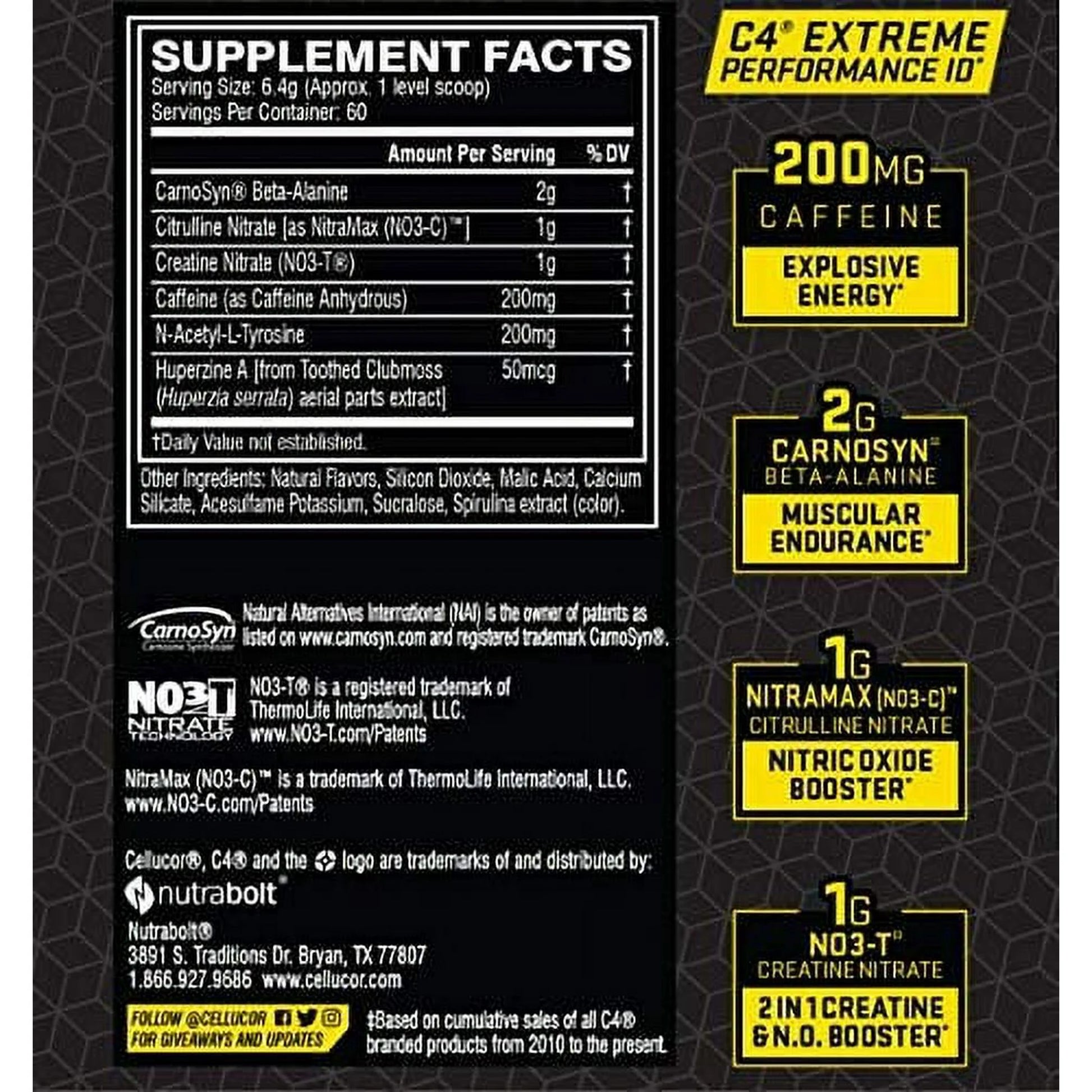 - EXTREME ENERGY — Take your training to the next level with explosive C4 Energy from 200mg of caffeine.