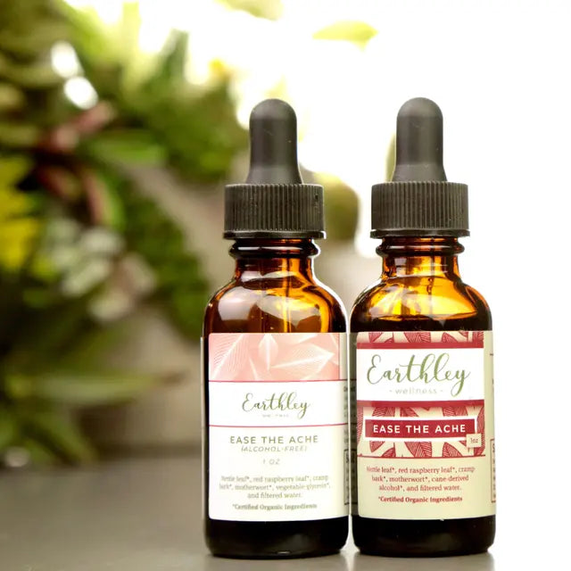 Four herbs in a base of organic cane-derived alcohol (Original) or vegetable glycerin (Alcohol-Free) unite to provide natural soothing for periods and postpartum discomfort. Ease the Ache was formulated with herbs that have vitamin K that may support a healthy flow rate, ease cramping and discomfort, and support healthy hormone level. For extra hormonal support, try Postpartum Balance!
