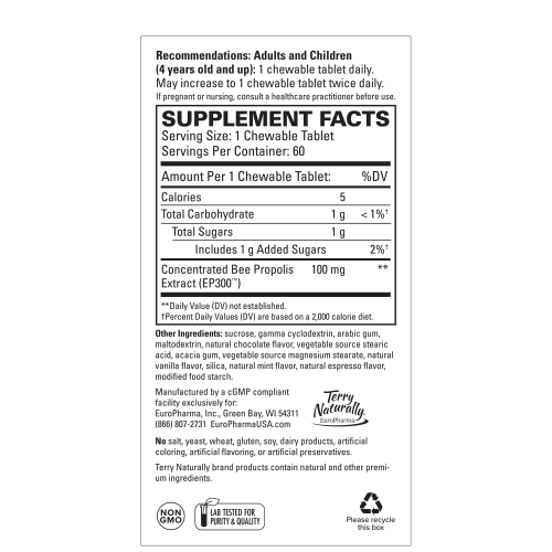 Make Propolis Extract EP300, in this convenient chewable tablet, your go-to immune supplement for the entire family.*