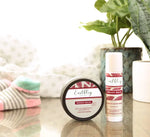 We use a combination of edible, plant-based oil, wax, and herbs to relieve discomfort and dryness on sensitive areas. It can even double up as a lip balm, dry skin treatment, diaper rash salve, and more!