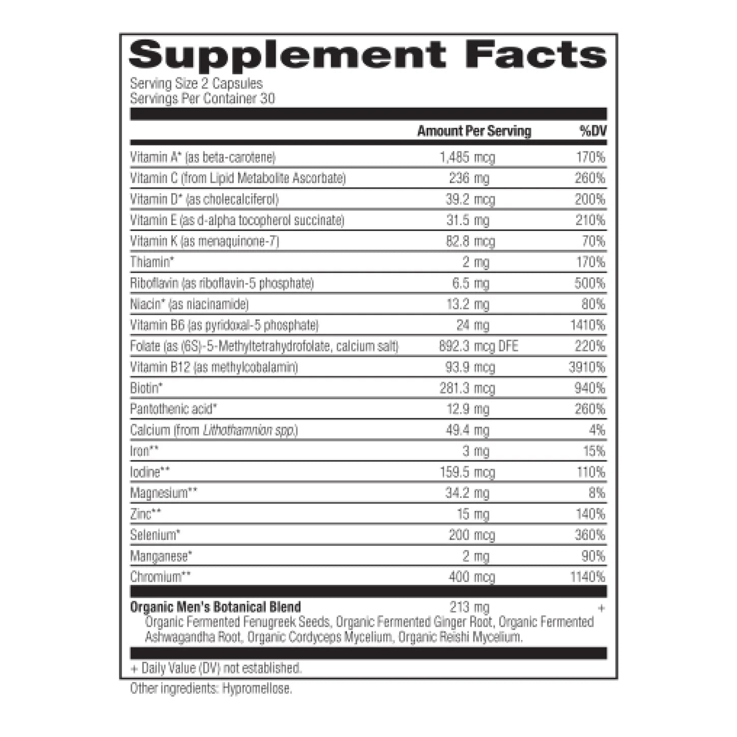 Designed to fill the nutrient gaps in the modern diet, this fermented multivitamin for men is expertly formulated with vitamins, minerals and time-tested superfood ingredients.