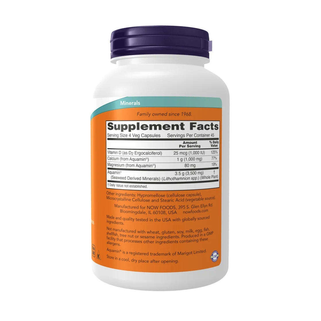 Aquamin® is a bioavailable, multi-mineral complex from marine red algae. Aquamin® is an excellent source of calcium, a good source of magnesium, and has more than 70 additional trace minerals. Research indicates that it may support proper bone mineralization, and may regulate key factors involved in the normal immune response to typical, everyday joint usage.* In clinical studies Aquamin® is shown to help support joint comfort and mobility.* A vegetarian-friendly vitamin D-2 is added to this formula to further support bone health.*