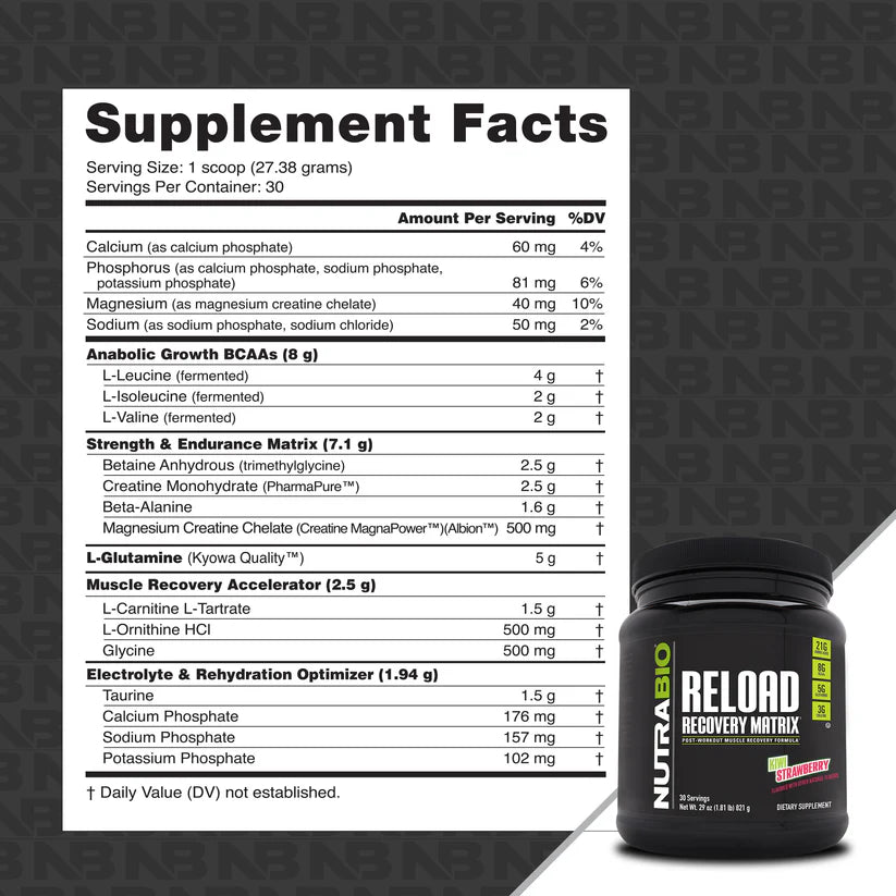 Whether you’re looking to build muscle, improve your endurance, boost protein synthesis, or simply recover faster after a workout, NutraBio RELOAD has got you covered. With its powerful combination of BCAAs, glutamine, creatine, and other potent ingredients, RELOAD provides the nutrients your body needs to reload and repair so you can get back to training and perform at the highest level.